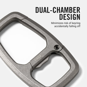 Meet the new Dual Chamber Carabiner, designed to bring security, convenience, and utility to the everyday. Keep your keys secure with a dual chamber design and keep a discreet bottle opener handy for spontaneous moments; it’s built for those who appreciate function without compromise. Crafted from lightweight aluminum or titanium, it’s truly designed for life.